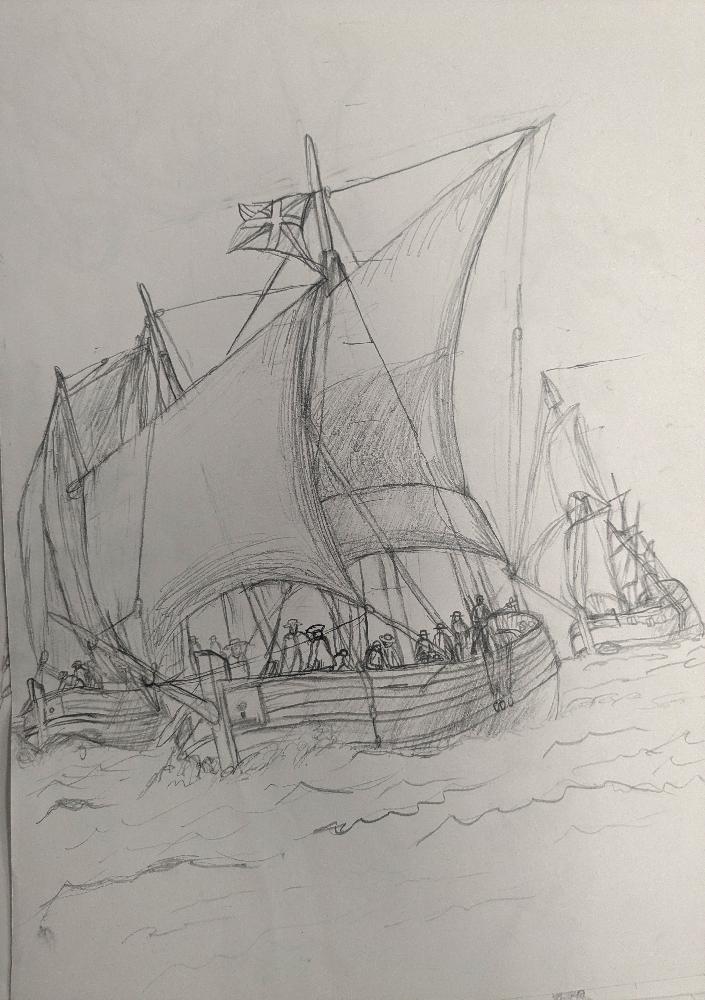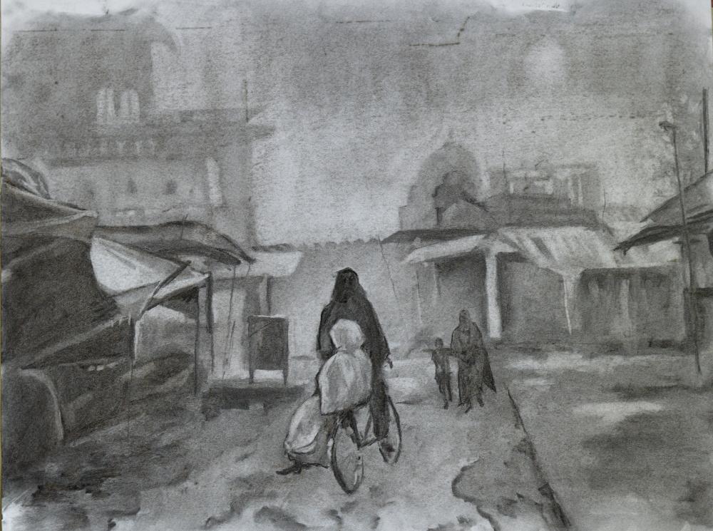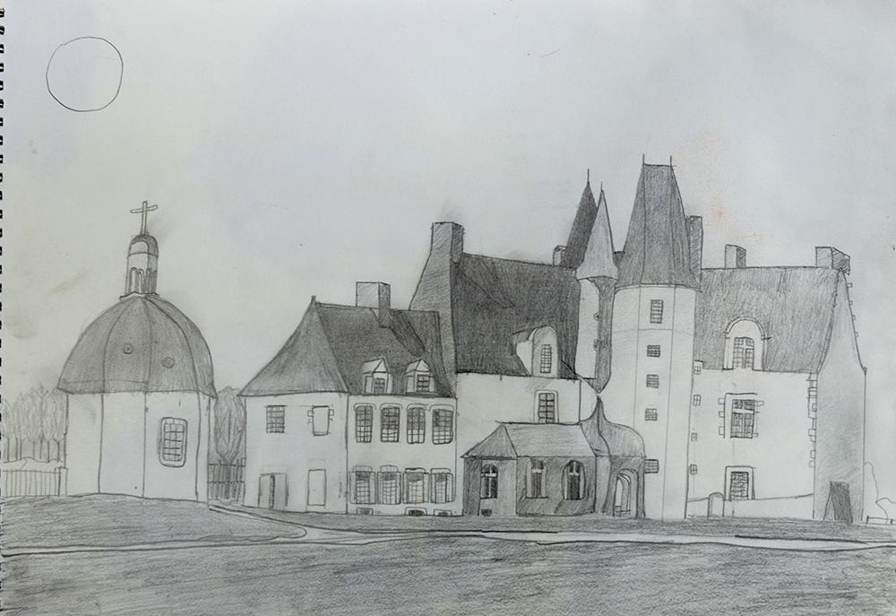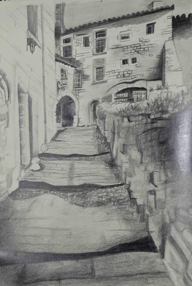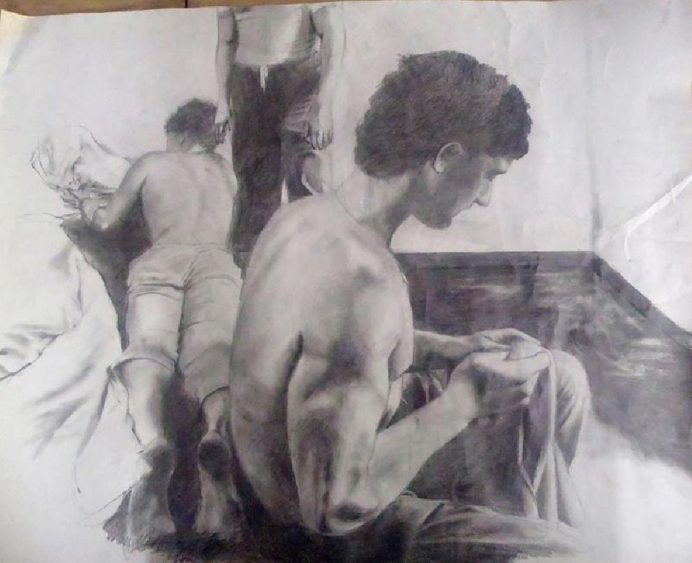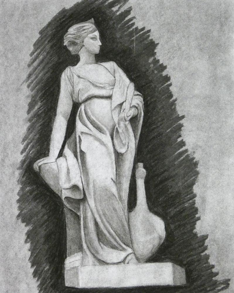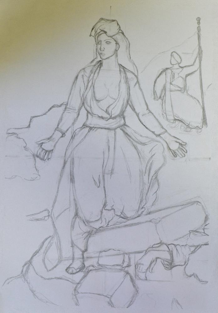 dessin d'après le tableau La Grèce sur les ruines de Missolonghi de Delacroix