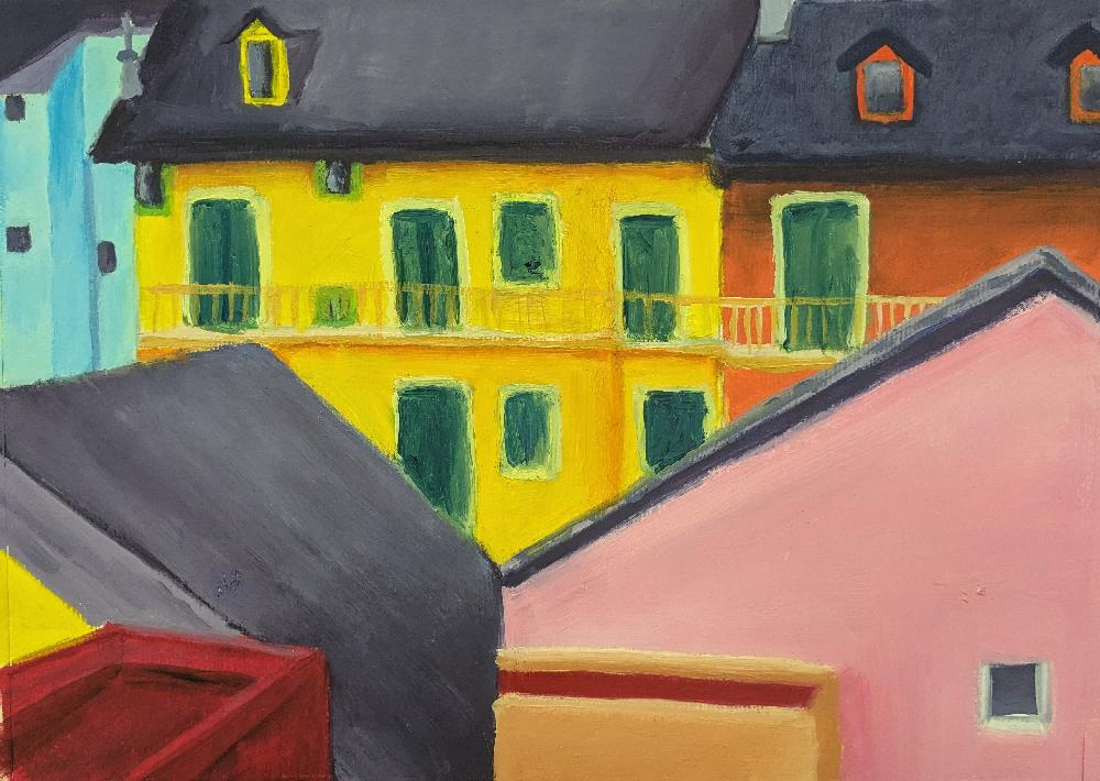 toits de Bordeaux, huile sur papier