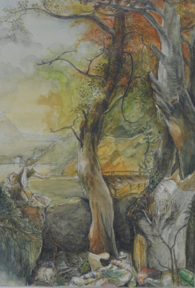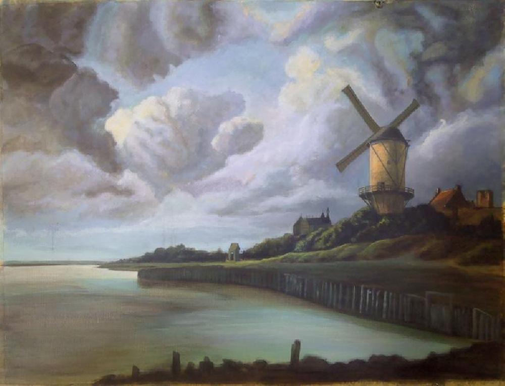 huile sur papier d'après Ruysdael