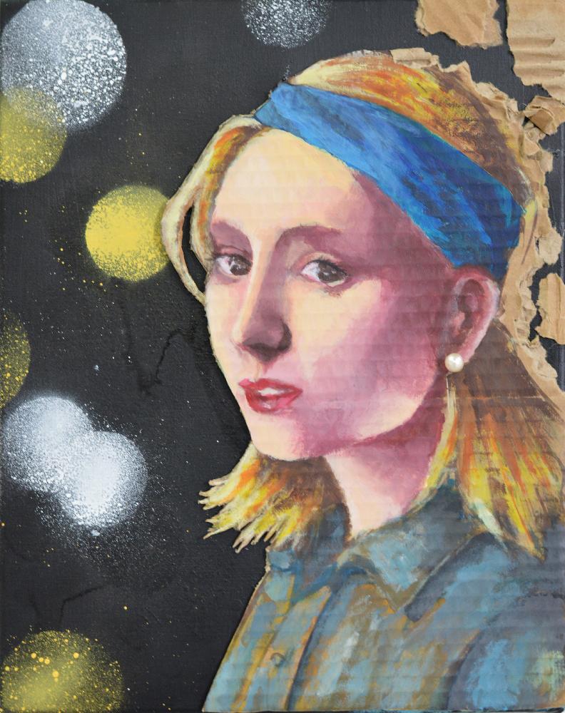 techniques mixtes/ interprétation de "la jeune fille à la perle" de J. Vermeer